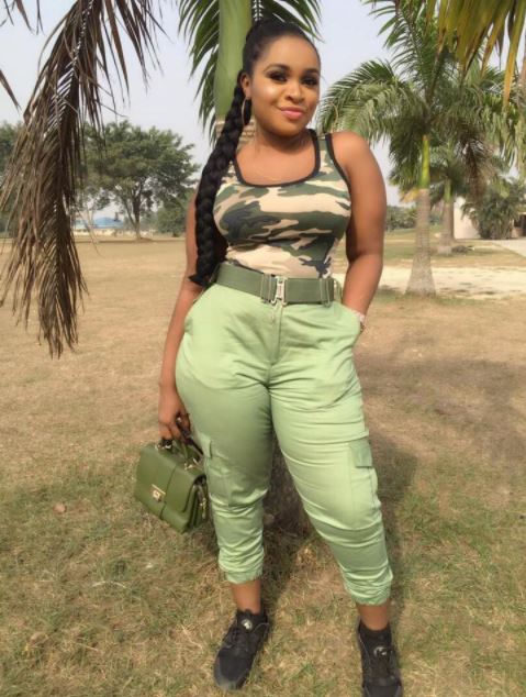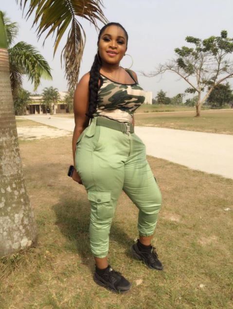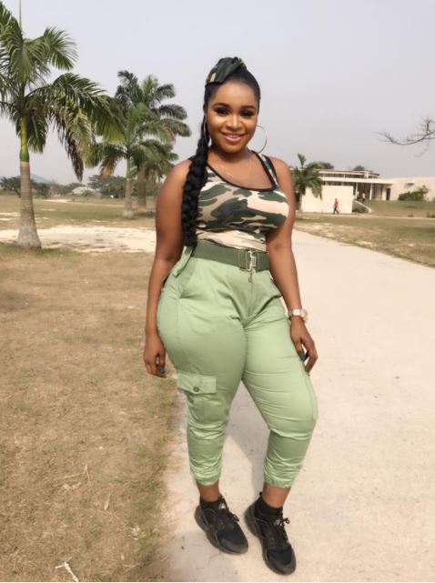A member of the National Youth Service Corps has been spotted rocking her khaki trousers with a camouflage top.
