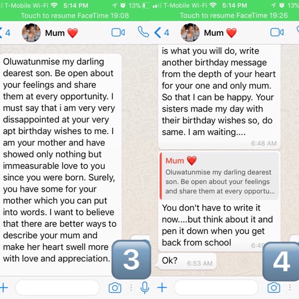 hilarious Whatsapp conversation between a Nigerian mother and her son