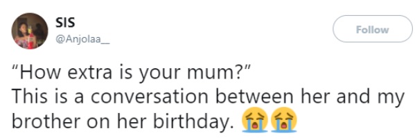 A Nigerian Twitter user identified simply as Sisi (@Anjolaa_), has