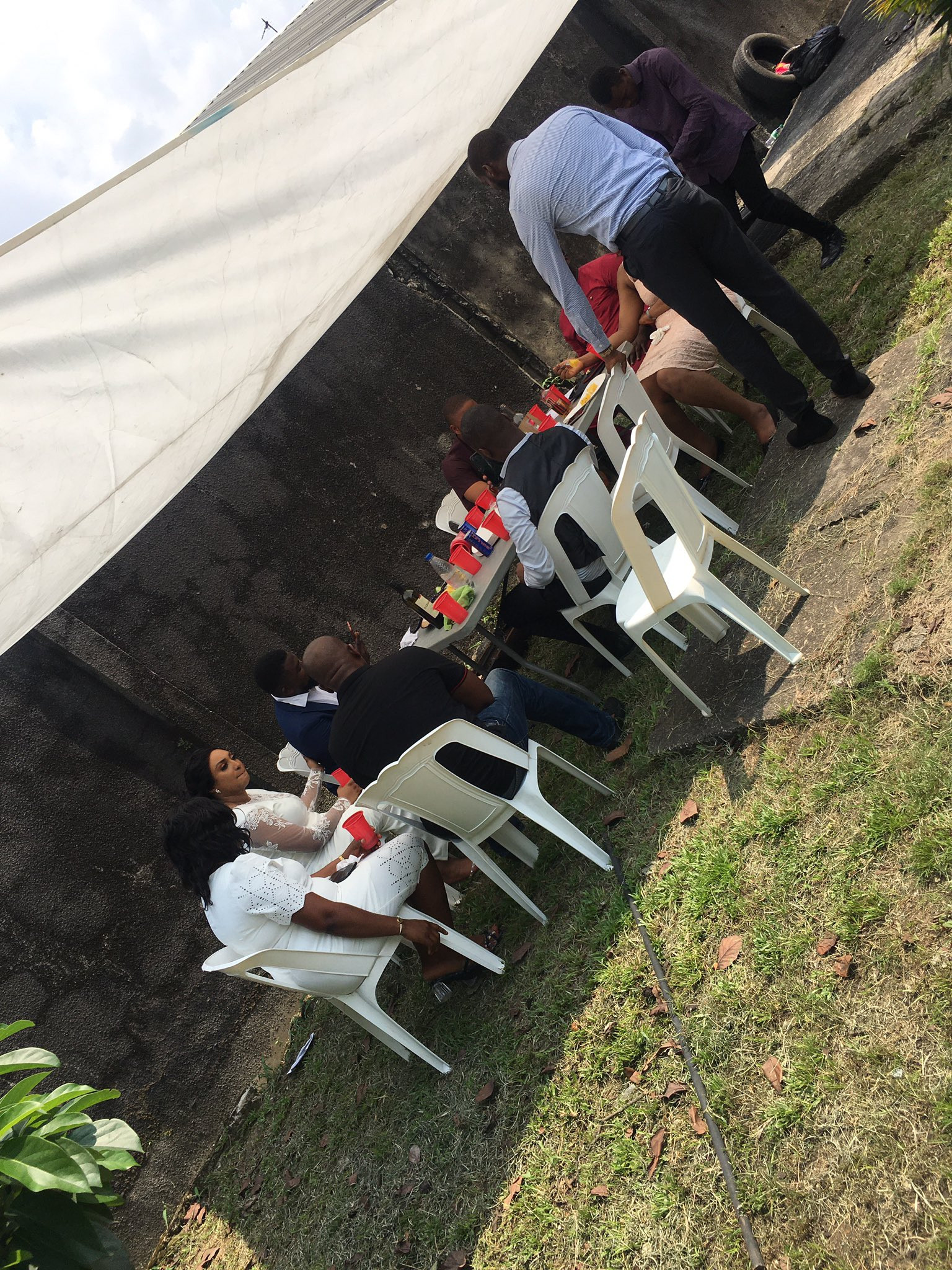 The couple’s friend, Mr Alayi, shared photos from the church ceremony and reception held under a canopy with a table at a backyard on Thursday,